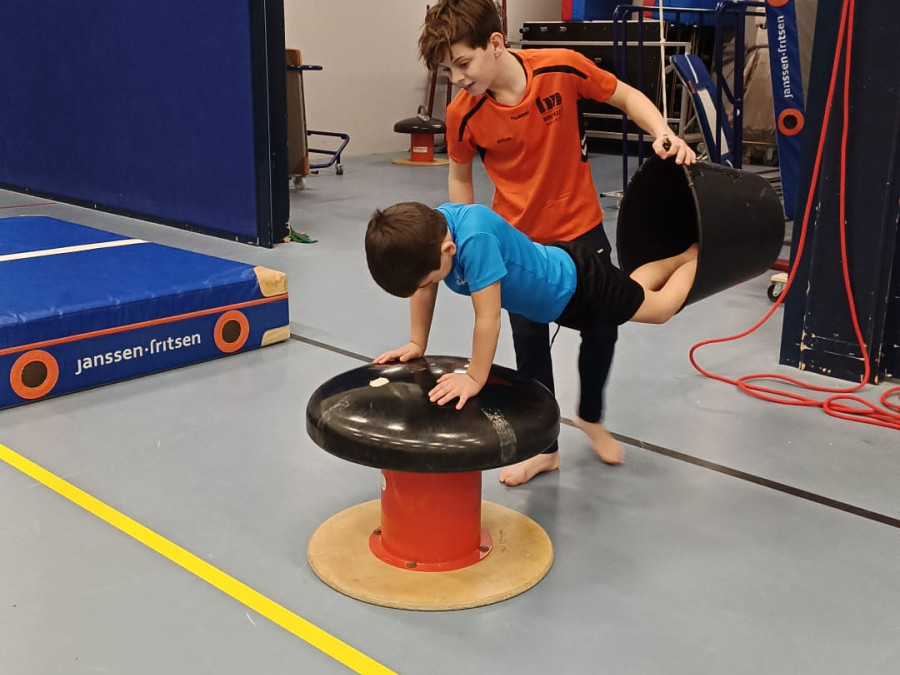Samen met juf Elisha en Demiën gaan jullie aan de slag op de toestellen sprong, ringen, rek, vloer (airtrack), brug en voltige.